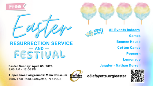 Reaching the greater Lafayette area, and showing them the love of Jesus, is a key goal here at C3. Our church is uniquely located between to a well-known university and the farmland of Lafayette. This enables us to converse daily with many who do not know Christ. We believe every conversation can be used as a Gospel Conversation.
