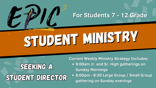 The Student Director provides vision, leadership, and discipling for middle school and high school students. This role involves building and equipping a team of volunteers, fostering relationships with students, teaching God’s Word in engaging ways, facilitating worship experiences, and partnering with parents in the discipleship process.