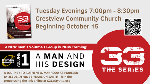33 The Series for Men - Vol. 1 Group - Click on the graphic above or Text the keyword: VOL1 to 765-230-3230 to register including your $15.00 book fee for this volume.